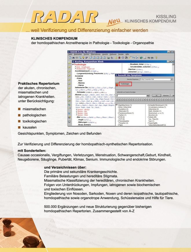 Miasmatische Arbeit - ohne Kompendium fast gar nicht sauber möglich.